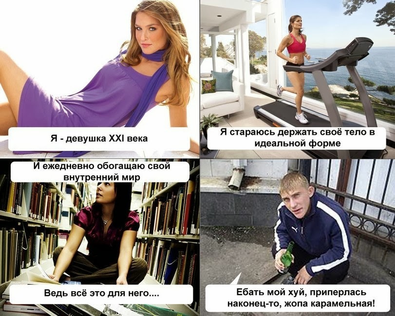 Был тут опус, мол, надоели мужики, баб оценивают на вдувабельность и сексуальность, лишь бы письку свою пристроить. Но, девушки, вы же сами даёте повод. А для мужчин действительно баба — это в первую очередь объект для секса, а потом уже всё остальное. Но это если повод давать. А если не выкладывать разнузданные фото, носить более-менее целомудренные вещи (не мешок от картошки, конечно), то внимания к личности всё-таки станет больше. Я знаю кучу девушек, которых лично бы и сама в кровать положила, но они не дают мне повода об этом думать.