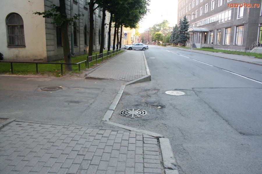 Я говорю про вот такие спуски, как здесь с плиточного тротуара. Пониже сделали, закатить что-то можно, если у тележки колёса большие, даже и не заметишь. А вот как ехать в коляске, я плохо представляю